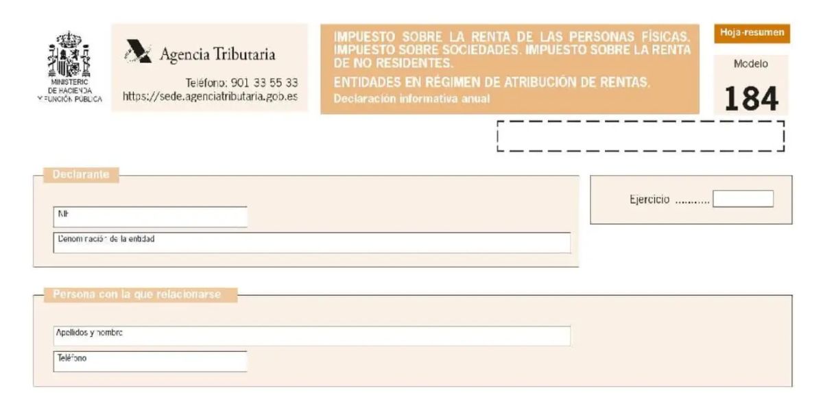 El modelo 184 es una declaración informativa anual que deben presentar las entidades en régimen de atribución de rentas, como las comunidades de bienes, sociedades civiles sin personalidad jurídica y determinadas herencias yacentes. Su finalidad es informar a la Agencia Tributaria de las rentas obtenidas por la entidad y de la parte de dichas rentas que corresponde a cada uno de los socios, comuneros, partícipes o herederos.